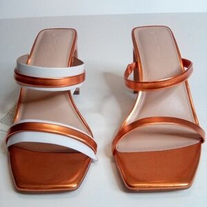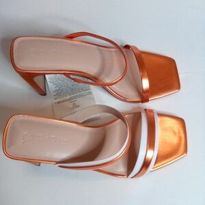 Avery Women's Two Strap High Heel Sandals, Sz.8, MetallicOrange- The Drop