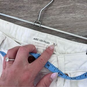 Size 28, in great pre owned condition! Has a few small spots nothing major but to be expected on white jeans