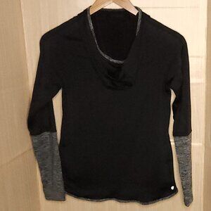 Avia women‘s black grey hooded athletic top small 4-6. Gently used condition. Measurements are: 28” sleeve (measured from neck seam), 26” from shoulder to hem, and 20”from armpit to armpit.