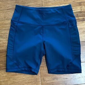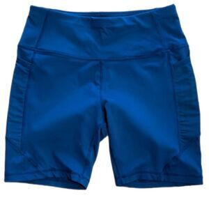 Soft and supportive nylon/spandex blend with side pockets for convenience. These shorts are designed with a high-rise fit and mid-thigh length for a flattering, functional look — perfect for workouts, cycling, or casual wear.