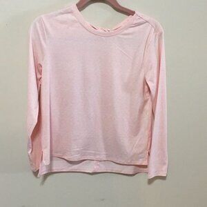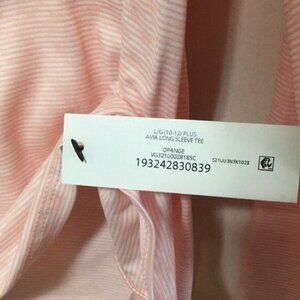 NWT Avia Girls Light Pink/White Long Sleeve Hi-Lo Active Top Large 10/12 Plus pink & white stripes with 4 inch slits on each side long sleeve