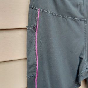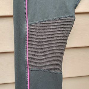 Avia Gray Athletic Leggings Pink Stripe Ribbed Knees Side Pockets