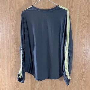This top is in great condition and features a lightweight fabric for comfort. It’s long sleeve with scrunched forearms and long enough to cover your backside lol, perfect for wearing with leggings.
