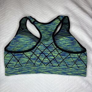Avia Green Blue Space-Dye Sports Bra Size M Racerback Compression Fit Black Trim