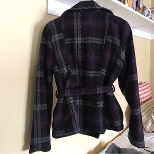 Avia JSzXL Plaid Jacket Dbl Breasted Purple/Blk BeltedLined Long Sleeves Collar