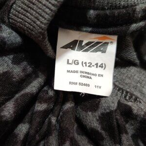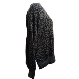 Avia L Black Gray Leopard Print Pullover Top Long Sleeve Crew Neck Thumb Holes