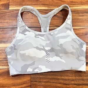 Avia Medium Racerback Sports Bra Grey White Camouflage Camo Workout Athletic
