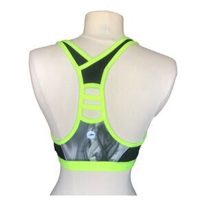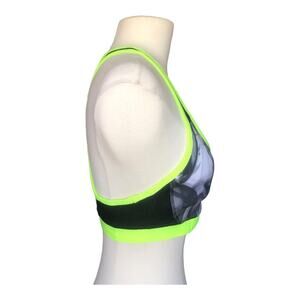 Avia NWT Neon Yellow And Black Matrix Print Removable Cups Sports Bra SM