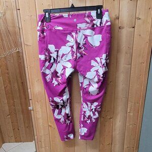 Avia, leggings, pink floral, floral print, activewear, high waisted, side pockets, plus size, xl, 14-16, gym, workout, yoga, running, athleisure, athletic, petite, cropped, comfortable, stretchy