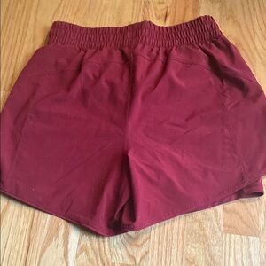 Experience ultimate comfort and flexibility with Avia's red athletic shorts, designed with a scalloped hem for enhanced movement. These lightweight shorts feature an elastic waistband, making them perfect for any sports or exercise routine.