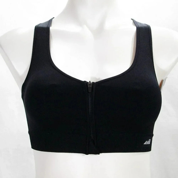 Avia Seamless Zip Front Close Zip Up Zipper Wire Free Sports Bra SMALL Black NWT