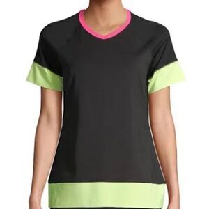 Avia Short Sleeve Colorblock Athletic Shirt, Black/Neon, Size XL (16-18)