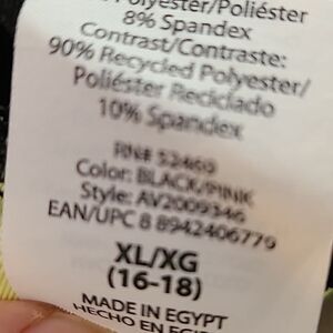 - Black with neon pink v-neckline & neon yellow band around the bottom & on sleeves