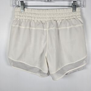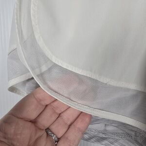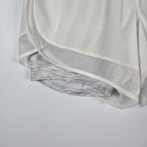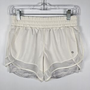 Avia Womens Athletic Running Shorts With Grey Biker Short Liner White Size XS. Chic and versatile athletic shorts. Ideal for workouts or casual outings. These aren't white white, but sort of a light cream. I don't know if they are supposed to be like that, but they are in excellent used condition.