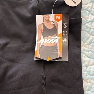 Avia Women's Black Bike Shorts. They are designed for active wear, with features that include a comfortable fit and moisture-wicking properties to keep the wearer dry during workouts. Some versions of these shorts also feature pockets for convenience.