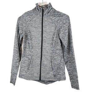 Avia Womens Gray Marled Full Zip Track Running Athletic Jacket Size XS. Thumb holes, mock neck, full zip, front pockets.