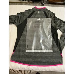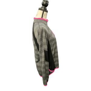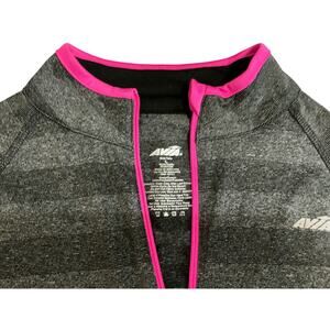 Stay comfortable and stylish during your workouts with this Avia Women’s Athletic Long Sleeve Pullover. 💪 This top features a gray striped design with bold black side panels and vibrant hot pink trim for a fun pop of color. The quarter-zip neckline adds versatility, while the breathable stretch fabric makes it perfect for running, gym sessions, or casual wear. 🏃♀️✨ Includes thumbholes for added comfort and a small side zipper pocket for convenience.
