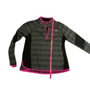 Avia Women’s Gray Striped Long Sleeve Quarter-Zip Pullover Top Size Large