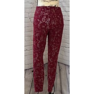 Perfect for gym workouts, yoga classes or anything in between these Fashion Performance Leggings from Avia are easily worn from studio to street. Features include extended waistband, pockets to stash your belongings and an infinity drawcord for a secure fit. Colors are burgundy with silver accents.