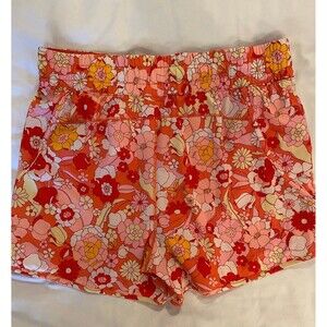 Avia Womens Size Large Orange Floral Print Double Layer Running Shorts W/Pocket