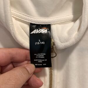 Avia Y2K Velvet Track Suit Size Large White Cream 1/2 Zip Crop Top Flare Pants