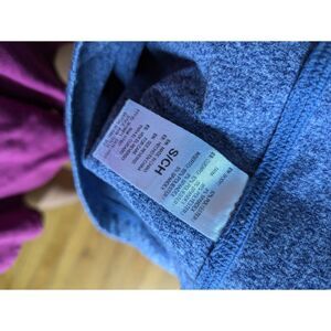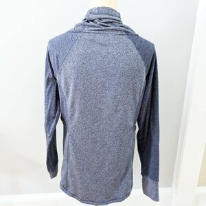 Avia Funnel Neck Active Pullover Sweatshirt Top. Blue pullover long sleeve top with cowl neck. Reflective details.