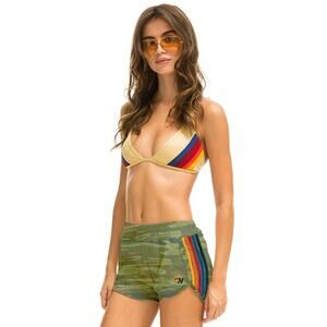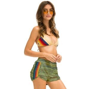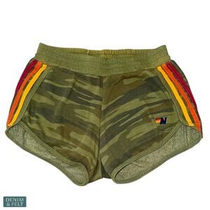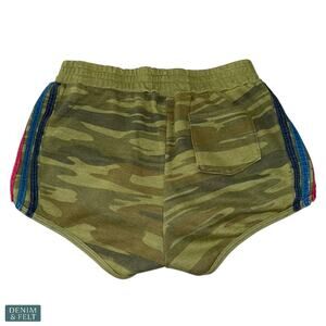 Aviator Nation 5 Stripe Camo Jogger Shorts Green Rainbow Side Retro Small