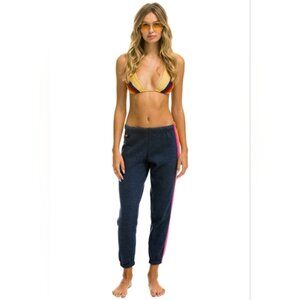 Aviator Nation 5 Stripe Sweatpants Heather Navy Neon Rainbow Size XS