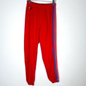 Aviator Nation 5 Stripe Sweatpants Red Neon Rainbow Sz S