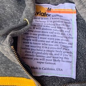 Zipper hoodie from Aviator Nation!! Features front zipper, hoodie, adjustable drawstring, split kangaroo pocket, long sleeves with ribbed cuffs, 5 stripe detail, hand sewn in Los Angeles and made to look vintage. 50% cotton, 38% polyester, 12% rayon. Excellent condition, no tags, as pictured, with some loose threads in a tiny spot on back of shoulder, right arm, as pictured. Size Medium. Approx measurements: 25" from top of shoulder to bottom of hem, 21" under arm to under arm, 19" hip to hip, 26" sleeve length. In heather gray with stripes. Firm price!