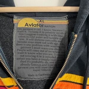 Aviator Nation 5 stripe zip hoodie Unisex (new) -XL charcoal
