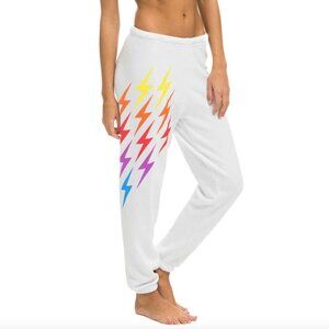 Aviator Nation Bolt Gradient Sweatpants White Rainbow Jogger Pants Size XS