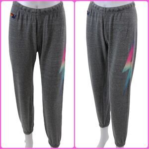 Aviator Nation Bolt Sweatpants XS Gray Rainbow Lightning Graphic USA Made