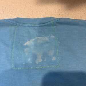 There is a larger bleach stain on the back of the shirt as well.