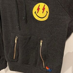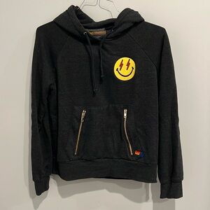 Aviator Nation Charcoal Gray Smiley Face Bolt Eyes Zipper Hoodie