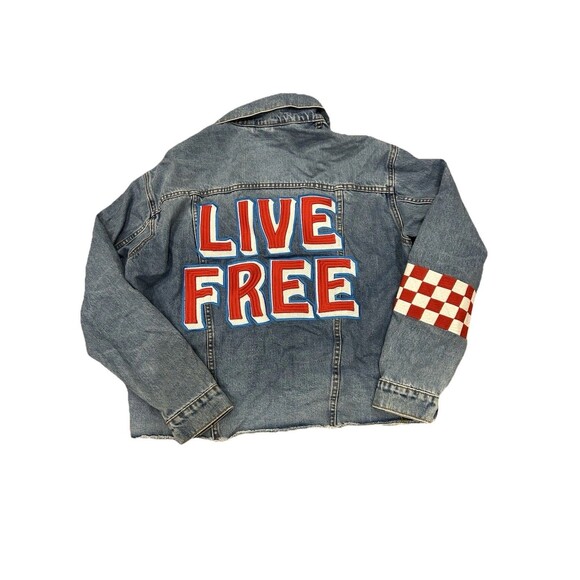 Aviator Nation Denim Live Free Cropped Jean Jacket Size Small