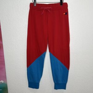 Aviator Nation Glider Joggers Colorblock Cherry Dresden Blue