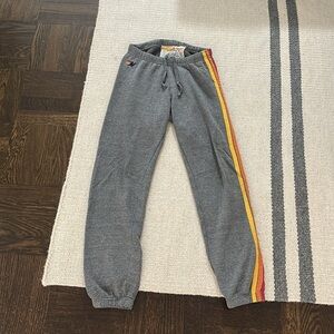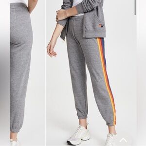 Aviator Nation Gray Track Pants with Rainbow Stripes
