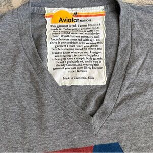 Classic gray V-neck tee by Aviator Nation. Soft and casual style. Roomy oversized T-shirt
