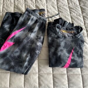 Aviator Nation set. Sweatshirt is a medium, sweatpants are a large. Slight pilling in the inner thighs shown in photo