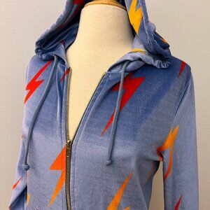 Aviator Nation Slate Blue Velour Lighting Bolt Full Zip Hoodie Sz S