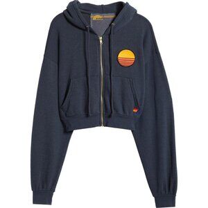 Aviator Nation Sunset Patch Crop Zip Hoodie sweatshirt size M