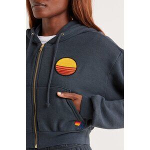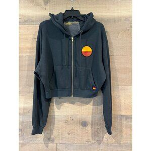 Aviator Nation Sunset Patch charcoal Crop Zip Hoodie sweatshirt size M
