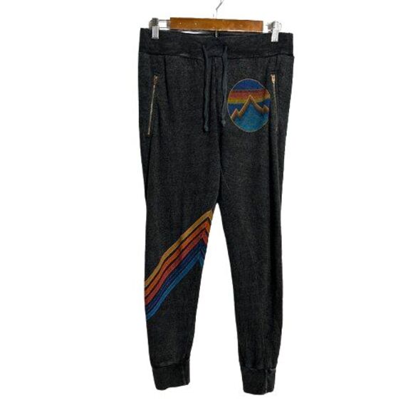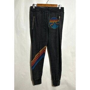 Aviator Nation Sweatpants Joggers M Gray Rainbow Stripe Mountain Pockets
