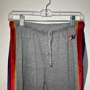 Aviator Nation Velvet Stripe Sweatpants with Stripe on Both Legs