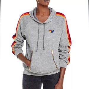 Aviator Nation Velvet Striped Pullover Hoodie Size S