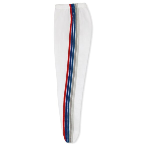 Aviator Nation White Sweatpants Rainbow Logo Stripe Detail Joggers Womens Size L