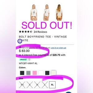Aviator Nation Women’s Cream Lightning Bolt Short Sleeve Crop Tee Shirt 🖤⚡️