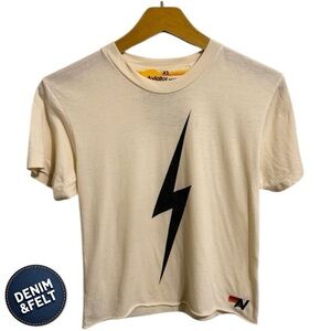 Aviator Nation Lightning Bolt Short Sleeve Crop Tee Shirt in cream. Super soft - 50% cotton, 50% polyester. Made in the USA. In great condition.