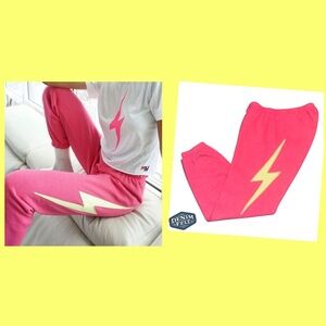 Aviator Nation Women’s Pink/Yellow Bolt Stitch Sweatpants/Joggers | PRELOVED⚡️🩷